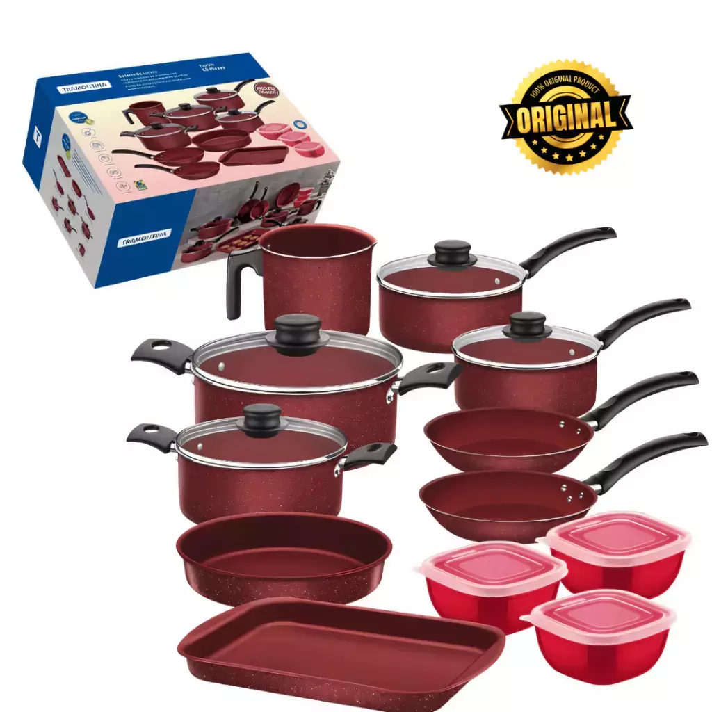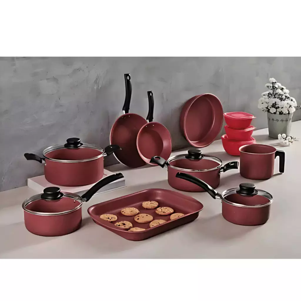 Con la batería de cocina Tramontina Turim de 12 piezas + 3 tapers adicionales, tenés todo lo necesario para preparar desde el desayuno más simple hasta una cena gourmet.